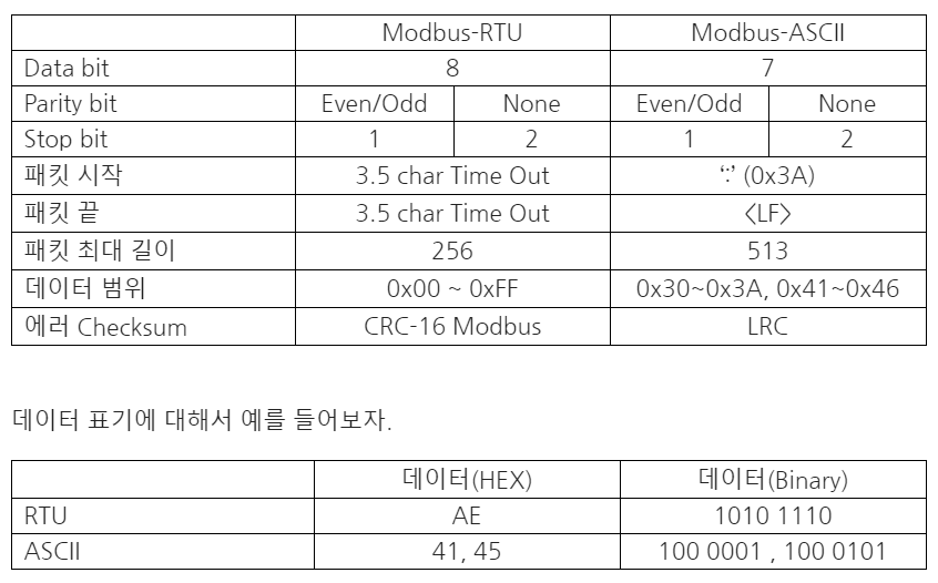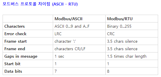 RTU(Remote Terminal Unit)는 Modbus의 이진형태로 성능이 개선된 형태이며, 모드버스는 RTU및 ASCII프로토콜이 있으며, RTU는 공백으로 프레임을 구분하며,