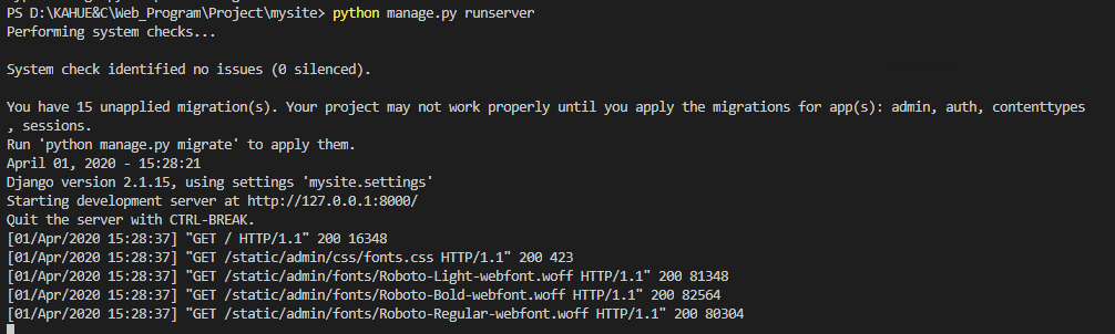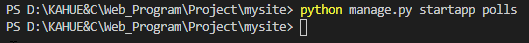 - 외부 mysite 경로에서 아래의 명령문을 실행