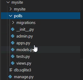 - polls/models.py - 모델(기본적으로 데이터베이스 레이아웃)을 정의한다.