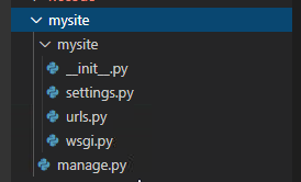내부 mysite - 프로젝트의 실제 파이썬 패키지 입니다. 그 이름은 그 안에 무엇이든 가져오기 위해 사용해야 하는 python 패키지 이름입니다. (예:) mysite.urls