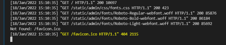 서버는 기본 포트 8000에서 실행되며 터미널 창에 다음 출력과 같은 출력이 표시됩니다.