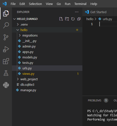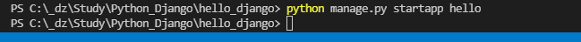 1. 가상 환경이 활성화된 VS Code 터미널에서 프로젝트 폴더(manage.py 가 있는 위치)에서