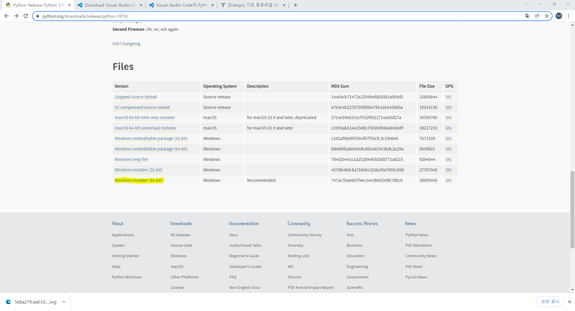 [Python_Django_VSCode] Django Tutorials - 2 (Python 설치)