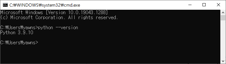 - 정상적으로 설치되었으면, 아래와 같이 버전(Python 3.9.10)이 확인 됩니다.