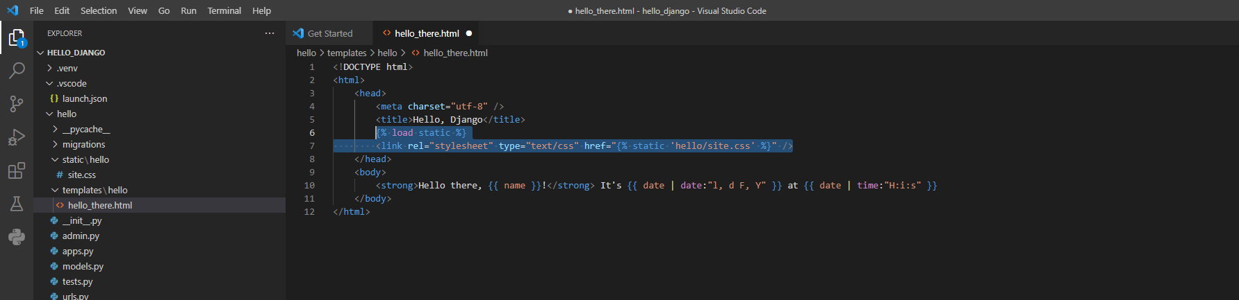 <link rel="stylesheet" type="text/css" href="{% static 'hello/site.css' %}" />